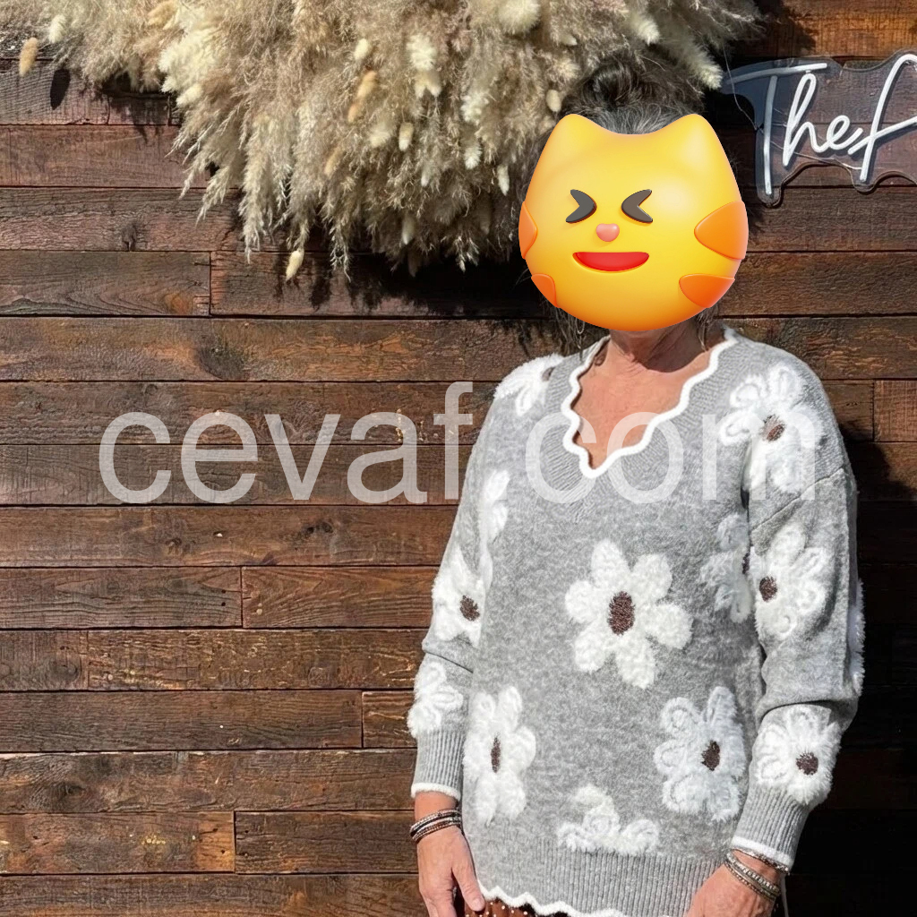 Grey V-Neck Floral Print Sweater