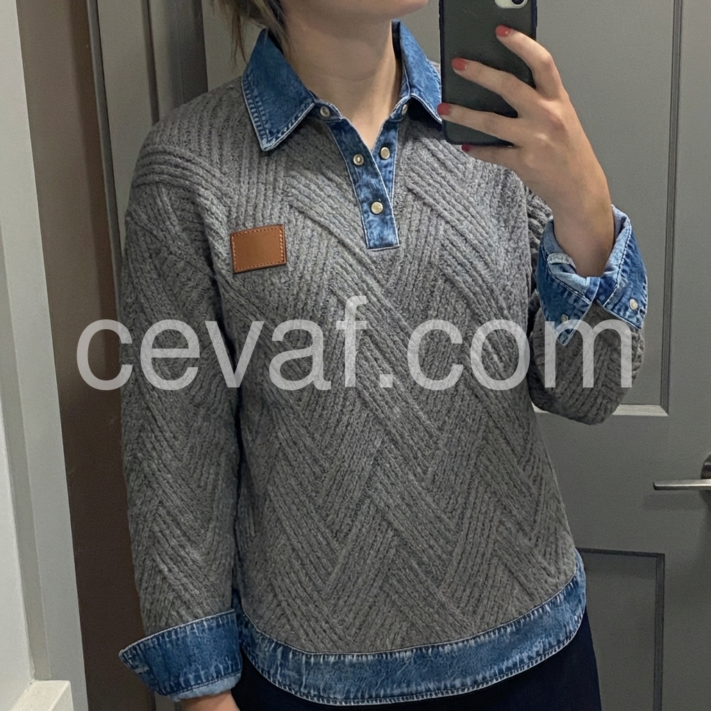 "Yes! If you want a refund please contact our customer service at this email ([email protected])."Elevate your casual wardrobe with this sophisticated grey herringbone knit sweater, featuring a distinctive denim collar that bridges the gap between refined knitwear and relaxed styling. The herringbone texture adds visual depth and dimension, while the contrasting denim collar provides a contemporary edge perfect for layering or wearing standalone. Crafted for versatility, this piece transitions seamlessly from weekend wear to smart-casual settings, offering both comfort and polished appeal.