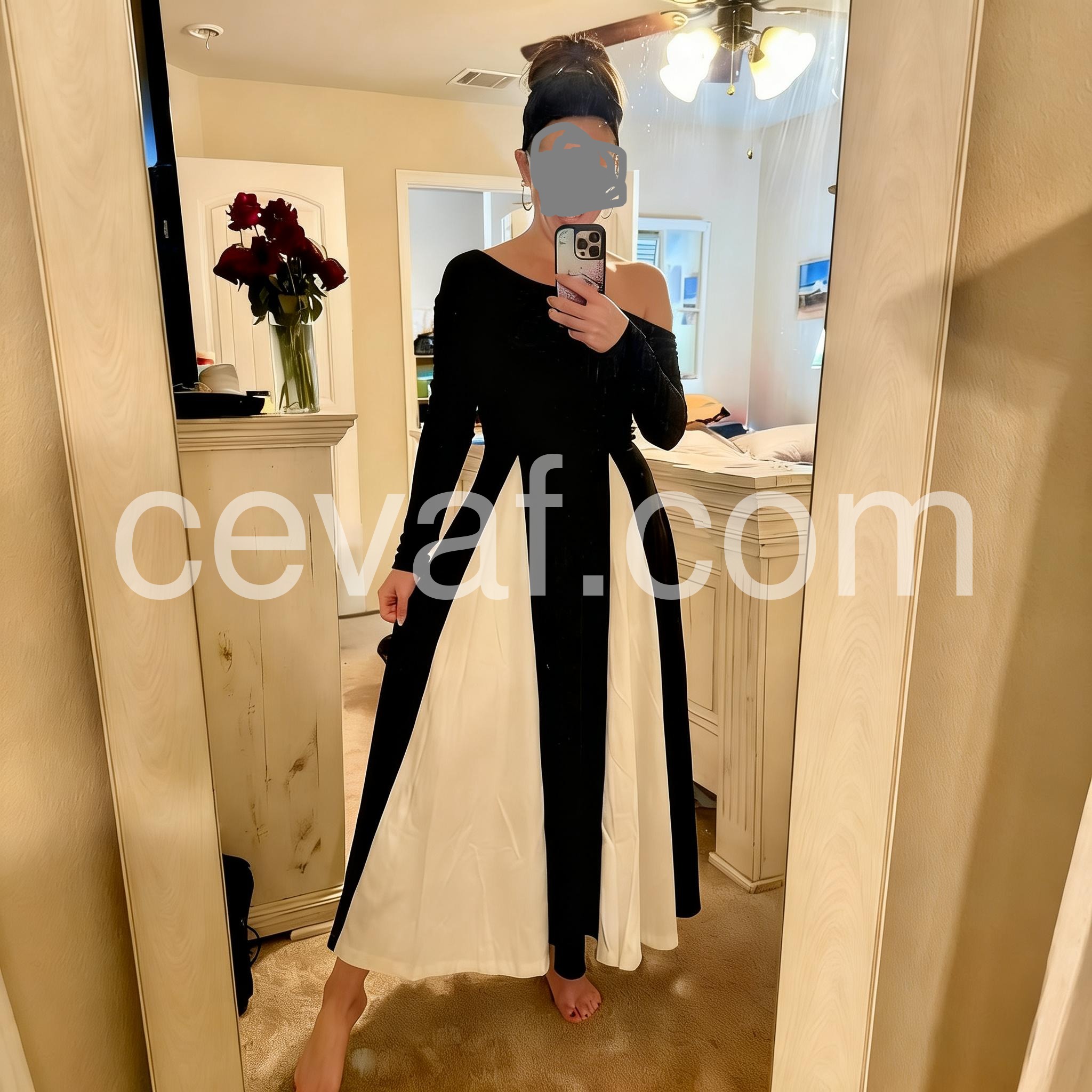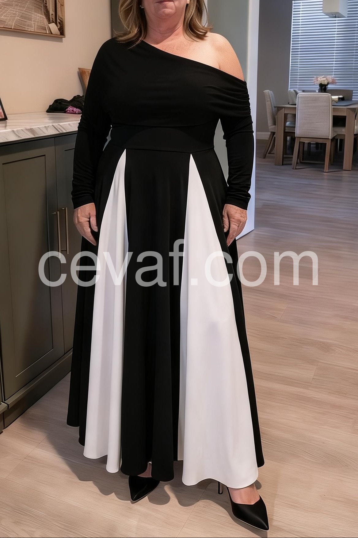 Black And White Color Block Maxi Dress