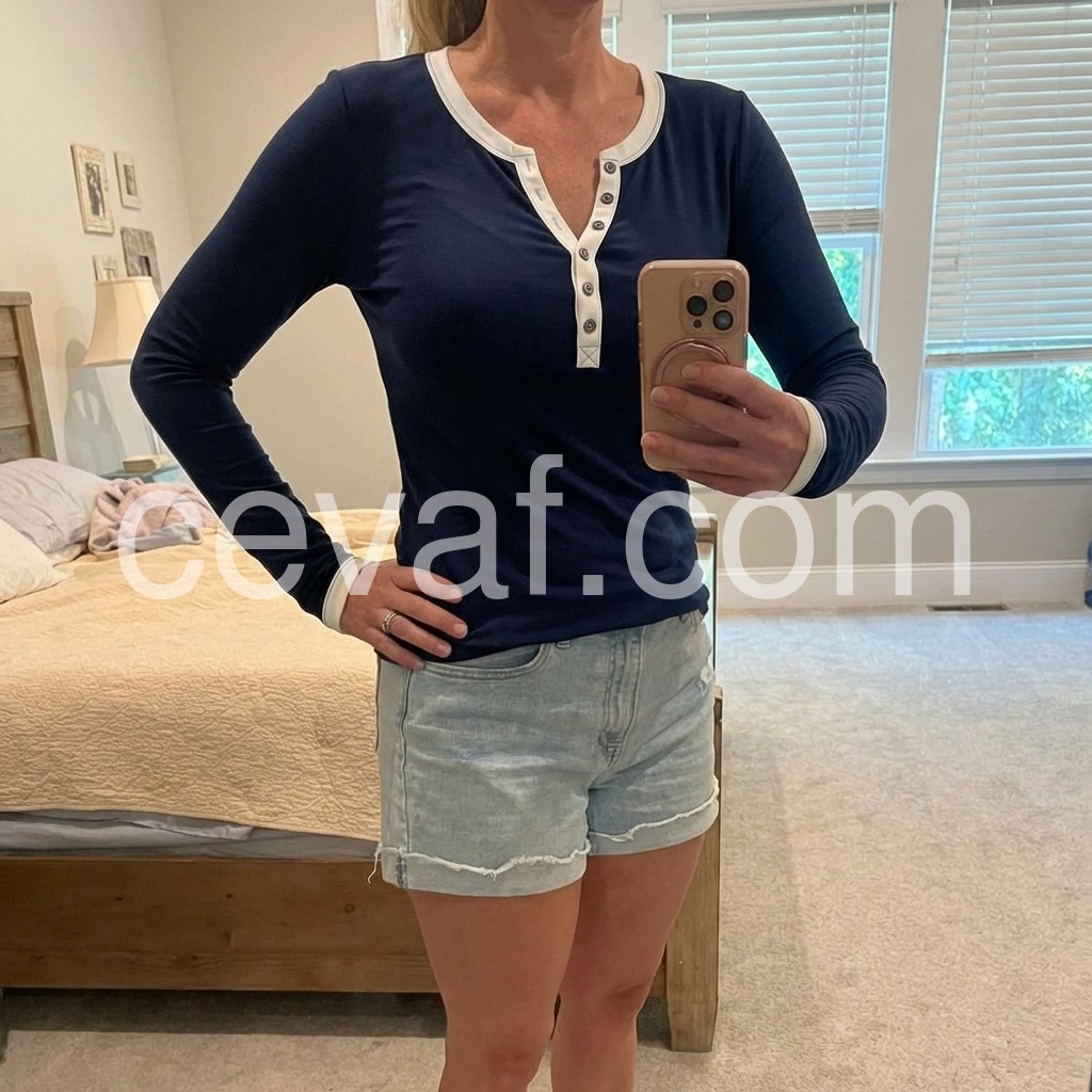 "Yes! If you want a refund please contact our customer service at this email ([email protected])."Elevate your everyday wardrobe with this navy long sleeve color block top, designed for versatile styling and modern appeal. The strategic color blocking creates visual interest while maintaining a polished aesthetic suitable for both casual and professional settings. Crafted with attention to detail, this piece offers comfortable wear throughout the day. The long sleeves provide practical coverage, making it an ideal layering option for transitional seasons. Perfect for those seeking quality basics that seamlessly integrate into any closet.