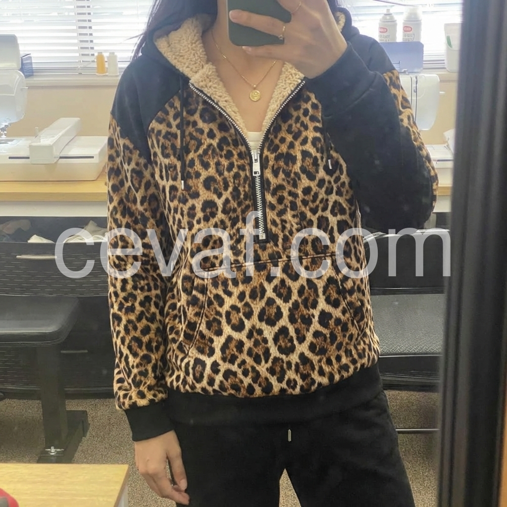 Bold Leopard Print Fuzzy Lined Sweatshirt