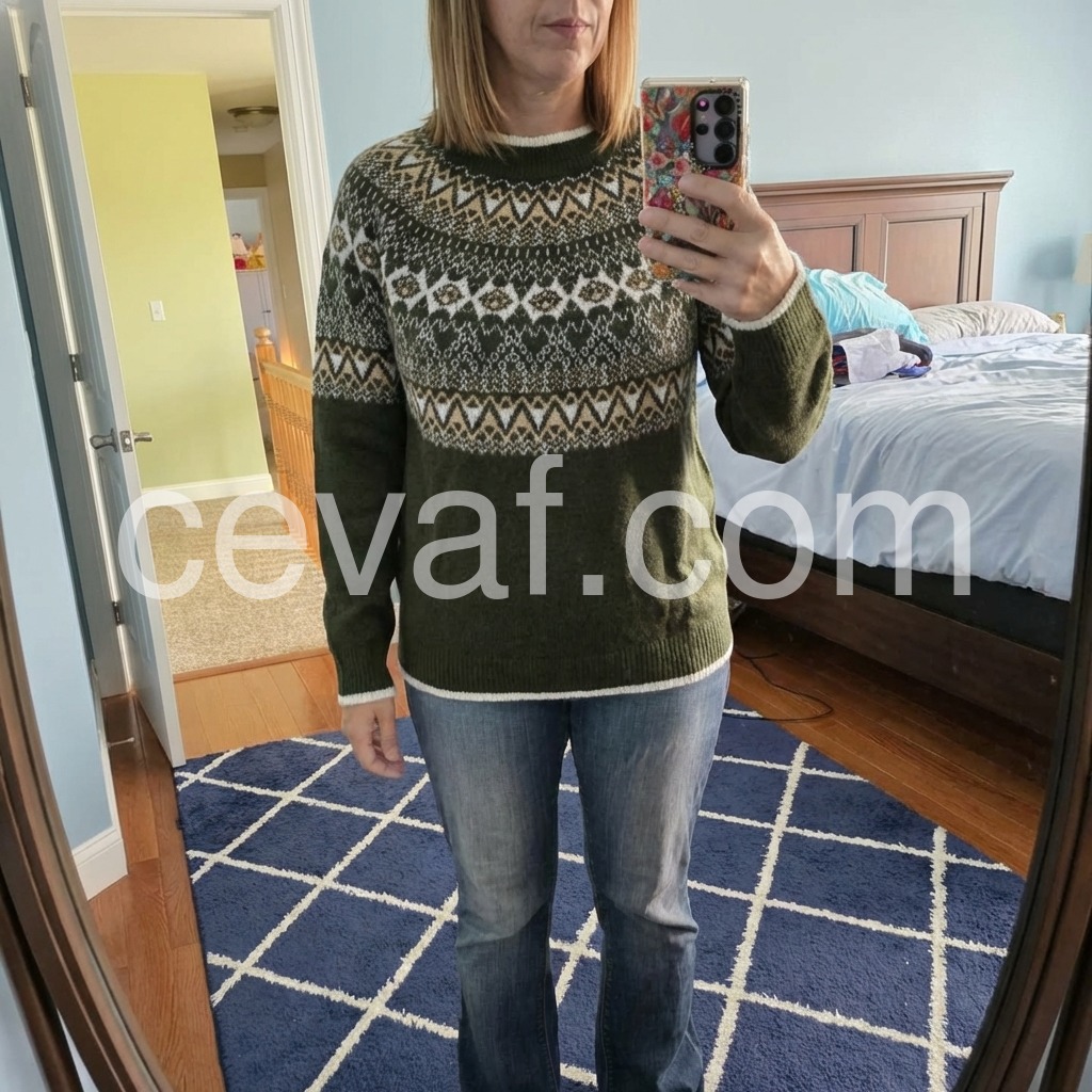Retro Print Round Neck Long Sleeve Sweater