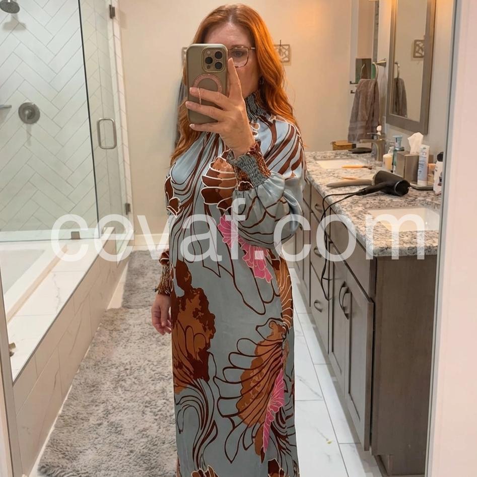 Popular Long Sleeve Print Maxi Dress