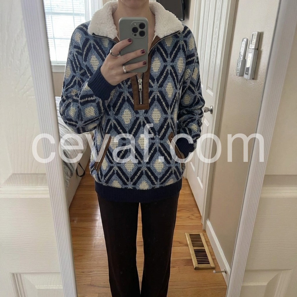 "Yes! If you want a refund please contact our customer service at this email ([email protected])."Elevate your cold-weather wardrobe with this sophisticated knit sweater, featuring a striking blue geometric pattern that adds visual interest to any ensemble. The fleece lining provides exceptional warmth and comfort, making it an ideal choice for layering or standalone wear during transitional seasons. Crafted from quality knit fabric, this piece combines contemporary design with practical functionality. The geometric detailing brings modern flair while maintaining versatility—pair it effortlessly with jeans, trousers, or skirts for polished everyday styling.