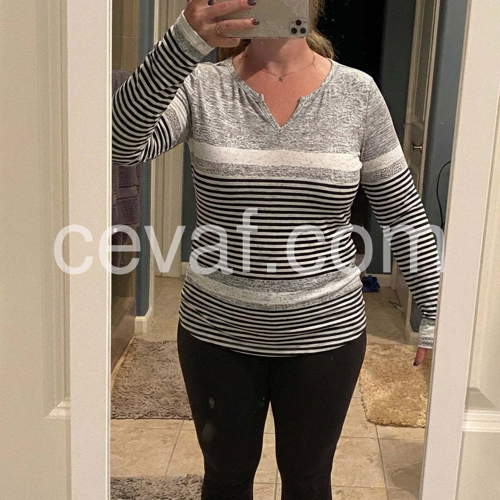 "Yes! If you want a refund please contact our customer service at this email ([email protected])."This Youthful Notched Neck Striped Print Long Sleeve Top combines a modern silhouette with timeless style. Designed with a distinctive notched neckline and classic horizontal stripes, it offers a refined yet casual look. The long sleeves provide comfort and versatility, making it a practical choice for layering or standalone wear. Ideal for everyday sophistication, this top complements both relaxed and polished outfits with ease.
